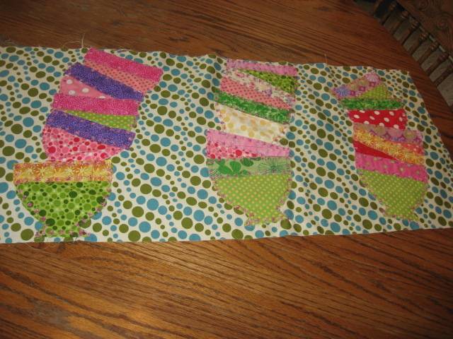 Whoa, you are really up for a challenge - to make the bowls into a complete table cover! The runner is darling and I like that you've set the bowls at different angles.